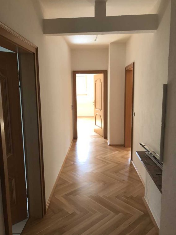 Die Wohnung befindet sich im 2. Obergeschoss (Dachgeschoss) eines 4-Parteienwohnhauses. Sie besteht aus insgesamt 3 Zimmern, einer Küche und einem geräumigen Badezimmer mit einer großen Eckbadewanne, einer großen Dusche, Bidet, 2 Waschbecken und WC. Weiterhin verfügt die Wohnung über ein separates WC.
