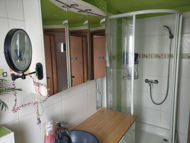 Das Haus ist teilmöbliert (z.B. Sitzgelegenheit in der Essküche und Wohnzimmer, ausgestattete Küche, Waschmaschine und Spülmaschine) und Weiteres. Das zu vermietende Zimmer ist 23 m2 groß, ist südlich ausgerichtet und teilmöbliert mit einem großen begehbaren Kleiderschrank, einem separaten Büro und einer eigenen Toilette. Bei Bedarf kann über weitere Möbelstücke in Absprache und je nach Verfügbarkeit gesprochen werden. Es liegt im 2. OG des RMH. Außerdem werden gemeinschaftlich genutzt: Die Essküche, das Wohnzimmer (beides im EG) und das Bad mit Dusche und Wanne (1. OG). Unmittelbar an der Hauptstraße ist eine Bushaltestelle.