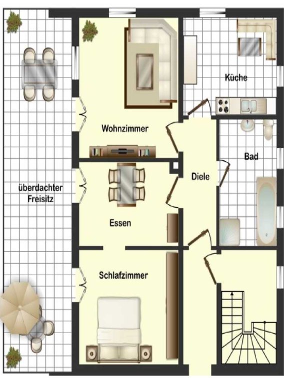 Ab dem 1.11.2025 kann diese freundliche, vollständig renovierte Erdgeschosswohnung bezogen werden. Zu der Wohnung zählen drei hübsche Zimmer. Der Energieausweis der Immobilie ist aktuell und liegt vor. Eine Besonderheit ist, dass es Terrasse mit ca. 44 m² gibt, von der Sie auch den Gemeinschaftsgarten am Haus zu Ihrer Erholung nutzen können. Durch den zur Wohnung gehörenden Stellplatz gehört die lange Suche nach einem Parkplatz der Vergangenheit an. Anschließend können Sie Ihre Wocheneinkäufe bequem in die bereits vorhandene Einbauküche tragen.Es gibt außerdem einen Kellerraum, der Ihnen Platz für Ihre Habseligkeiten bietet.