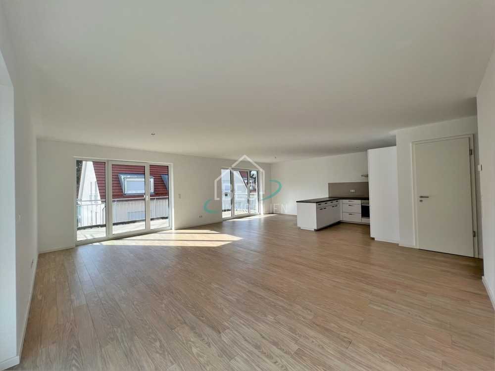 Die im 1.Obergeschoss gelegene Wohnung verfügt über 4 großzügig geschnittene Räume mit einem offen gestalteten Wohn-/Essbereich. Von hier aus hat man einen direkten Zugang zum Balkon. Die Wohnung besitzt ebenso eine hochwertige Einbauküche.