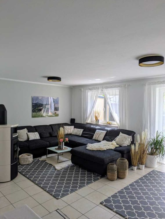 Im Erdgeschoss befindet sich die Küche mit einer neuwertigen und sehr hochwertigen Ausstattung sowie ein großzügiger Wohn- und Essbereich mit Kaminofen. Vom Wohnzimmer aus haben Sie Zugang zu Garten und Terrasse (Südseite). Der Eingangsbereich bietet viel Raum, eine separat zugängliche Speisekammer sowie ein Gäste-WC.