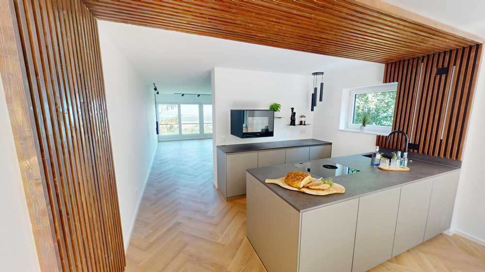 Diese ansprechende, vollständig renovierte Maisonette-Wohnung zeichnet sich durch eine luxuriöse Innenausstattung aus und kann zum 01.08.2025 bezogen werden. Die Wohnung verfügt über 3,0 geräumige und offene Zimmer. Die nach Süden ausgerichtete Terrasse können Sie an schönen Tagen zum zweiten Wohnzimmer machen. Durch die großen Fenster im Wohnzimmer verwandelt man das Wohnzimmer regelrecht in eine Art "Loggia" mit atemberaubenden Weitblick. Zur Wohnung gehört eine hochwertige Design Einbauküche im Wert von 25.000€. Die Wohnung verfügt über einen Stellplatz unter einem Carport. Ein Kellerraum bietet ausreichend Stauraum für Habseligkeiten.