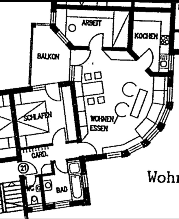 ◼️ Zimmer: 3 Zimmer (Arbeitszimmer, Wohnzimmer/Esszimmer, Schlafzimmer, Küche, separates Gäste-WC, Tageslichtbad)