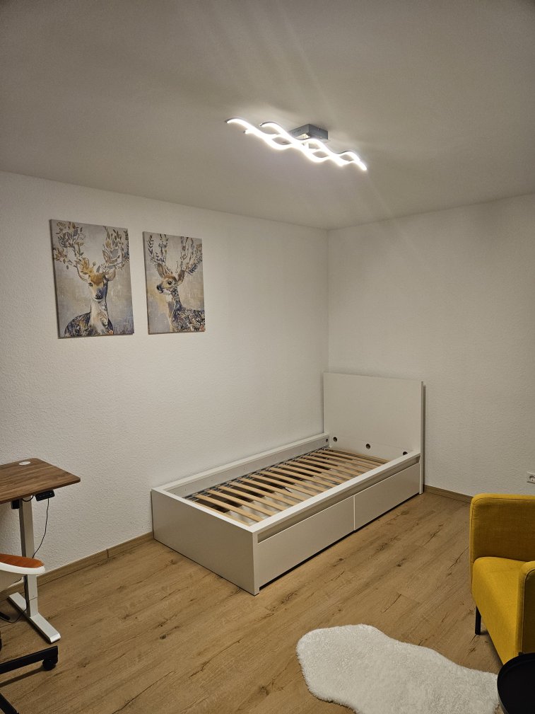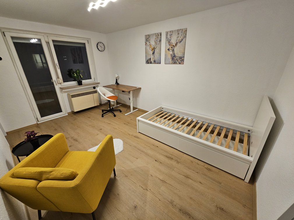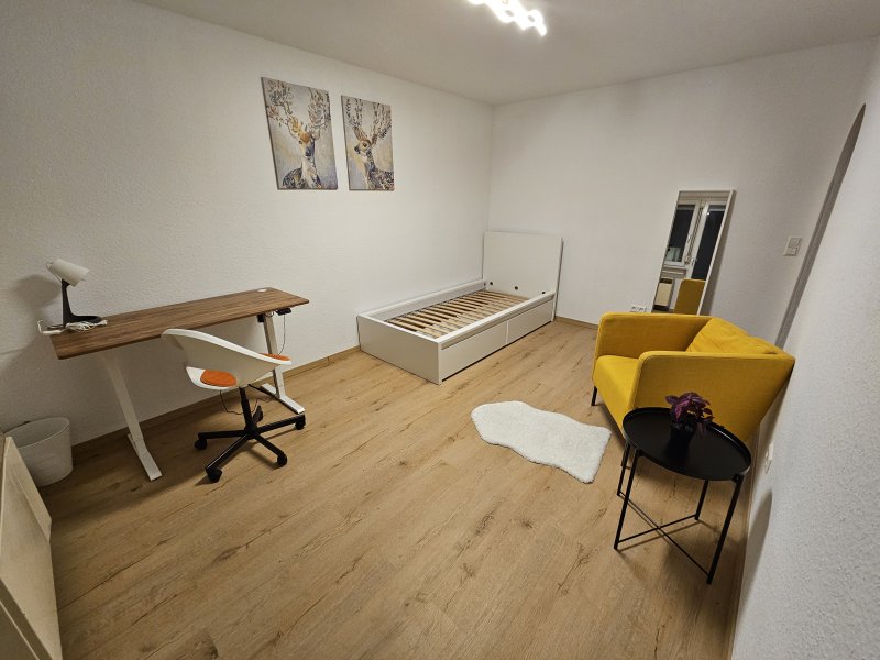 Heller Wohn-/Schlafbereich mit hochwertigem Laminatboden