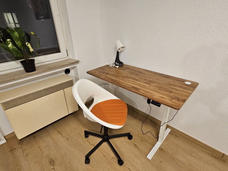 Schreibtisch mit ergonomischem Stuhl – perfekt zum Arbeiten oder Studieren