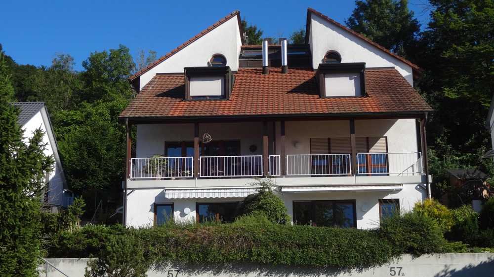 Moderne Doppelhaushälfte in LÖ-Haagen, Ritterstr. 57 mit großem Südbalkon und Doppelgarage in ruhiger Wohngegend. Nordwestseitig überdachter Sitzplatz und Balkon mit Abendsonne, absolut ruhig und mit Blick auf die Burg Rötteln.