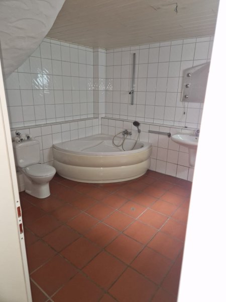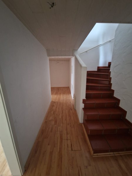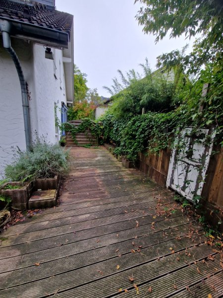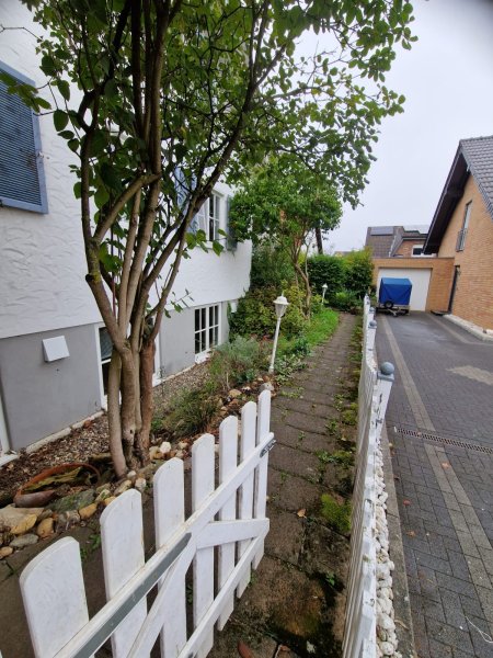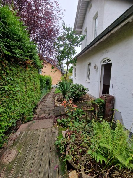 Diese helle Wohnung hat im Erdgeschoss ein großes Wohnzimmer, welches man direkt am Eingang betritt sowie eine Küche und ein Gästebad und im Halb Souterrain ein großes Bad mit Eckbadewanne und zwei Zimmer. Ausgestattet ist sie mit Parkettboden, Terrakotta-Fliesen und Fußbodenheizung. Man gelangt in die Wohnung über einen eigenen Eingang und einen kleinen Garten Und Terrasse. Neben dem Carport befindet sich ein Stellplatz für diese Wohnung.
