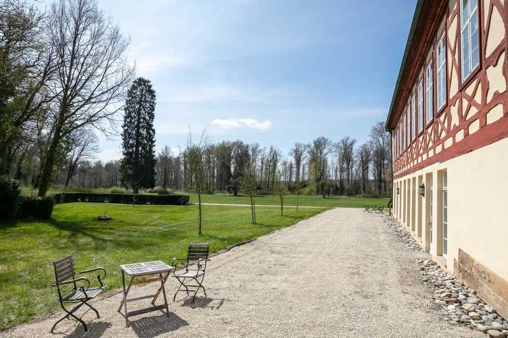 Zur Vermietung steht eine wunderschöne, repräsentative 5-Zimmerwohnung in der Orangerie von Schloss Eyrichshof, die sich auf zwei Etagen über 223 m² erstreckt. Ihr eigener Garten geht direkt in den Schlosspark über.