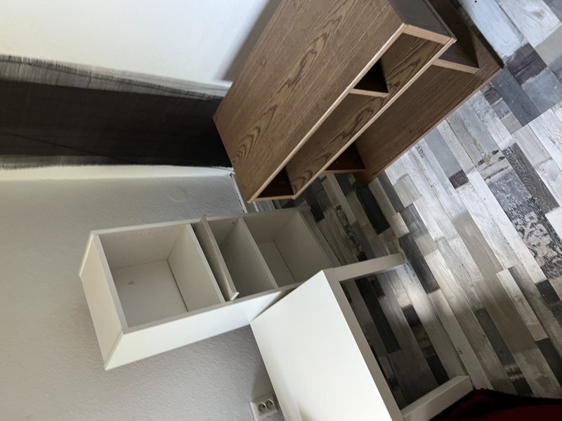 • Möbliert (teilweise): Bett, Nachttisch, Schreibtisch, Stuhl, Kleiderschrank (im Wandeinbau) und kleiner Wäscheschrank