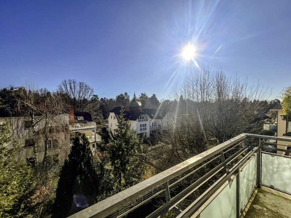 Die neuen, dreifachverglasten Fenster tragen maßgeblich zur Energieeffizienz bei. Das Schlafzimmer beeindruckt zusätzlich durch eine hochwertige Innendämmung mit Dämmputz, der für ein angenehmes Raumklima sorgt. Das großzügige Wohnzimmer bietet viel Platz für eine gemütliche Einrichtung und führt direkt auf den schönen Balkon. Von hier genießen Sie einen malerischen Blick in die grüne Villenlage von Kronberg-Schönberg.