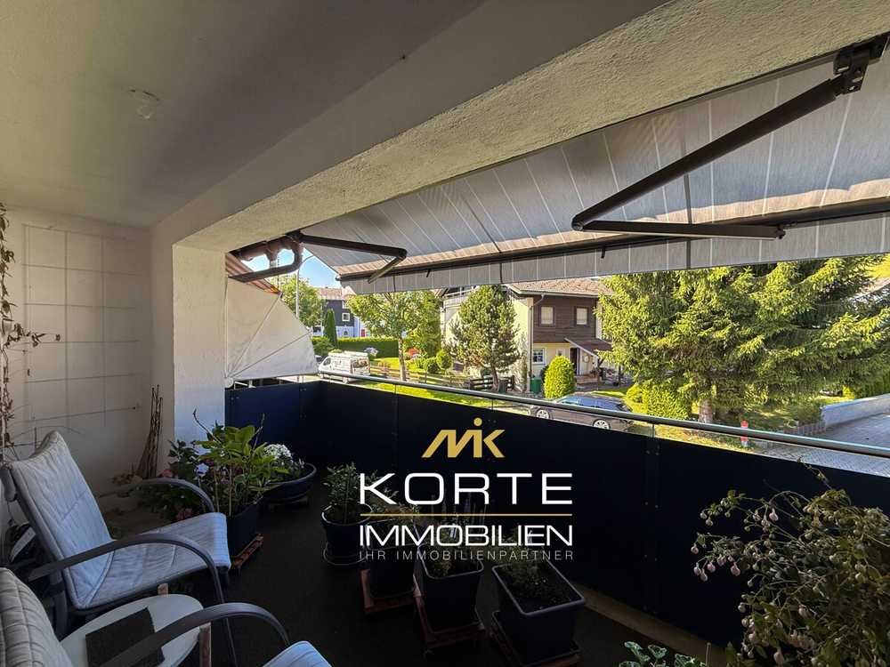 Auf der rechten Seite erwarten Sie ein ruhiges, helles Schlafzimmer sowie ein weiteres Gäste- oder Arbeitszimmer – perfekt für Homeoffice oder Hobby. Das lichtdurchflutete Wohnzimmer ist ein echtes Highlight und öffnet sich zu einem sonnigen Balkon mit Markise, der an warmen Tagen zum Verweilen einlädt. Der großzügige Koch- und Essbereich bildet das Herzstück der Wohnung und bietet ebenfalls Zugang zu einem zweiten Balkon mit einem traumhaften Blick auf die Berge – hier genießen Sie entspannte Stunden mit Familie und Freunden.