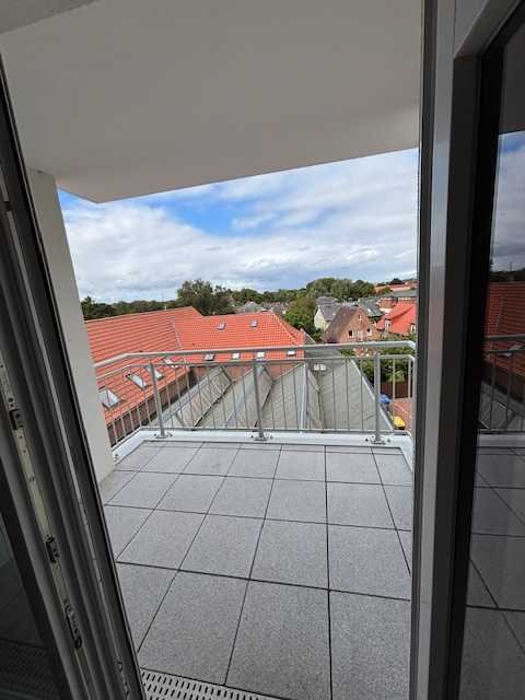 Diese freundliche Maisonette-Wohnung im 4. Stock zeichnet sich durch eine gehobene Innenausstattung aus und kann ab dem 1.10.2025 bezogen werden. Das Haus "Domblick" ist barrierefrei zugänglich und durch einen Fahrstuhl gelangen Sie bequem vom eigenen Parkplatz ins entsprechende Stockwerk. Zur Wohnung gehören auch zwei Balkone mit Blick Richtung Küste und Sonne ab Nachmittags. Ein Stellplatz ist für die Wohnung reserviert. Die Einbauküche ist direkt neben dem großzügigen und hellen Wohn- Essbereich und durch eine Tür vor Einblicken geschützt. Der untere Bereich der WOhnung bietet bereits alle Räume, sodass der obere Bereich für home office und Gäste/Kinder zur Verfügung steht. Die Räume sind mit Vinyl Klick fußfreundlich belegt. Die RÄume sind hell gehalten. Im Bad befindet sich eine Niesche für die Waschmaschine , zwei Waschbecken und eine barrierefreie Dusche.