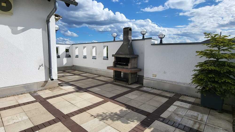 Die Wohnung erreichen Sie über das gemeinschaftlich genutzte Treppenhaus, das zu einem kleinen Vorraum führt. Von hier aus gelangen Sie direkt auf die großzügige Dachterrasse, in die Wohnung selbst sowie in einen praktischen Abstellraum.