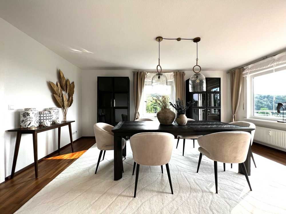 Die Wohnung ist hochwertig renoviert worden mit zwei Bädern und einer luxuriösen Ausstattung im Urban Country Stil, mit exklusiven Möbeln der Marke Riviera Maison. Die modern eingerichtete Küche ist sehr großzügig. Des Weiteren verfügt die helle 4 Zimmer-Wohnung über einen weiteren Raum von ca. 12 m² im Dachgeschoss. Dieser separate Raum ist ideal als Büro oder Fitnessraum nutzbar. Ein zusätzlicher Kellerraum und eine Garage gehören ebenfalls zu der Wohnung.