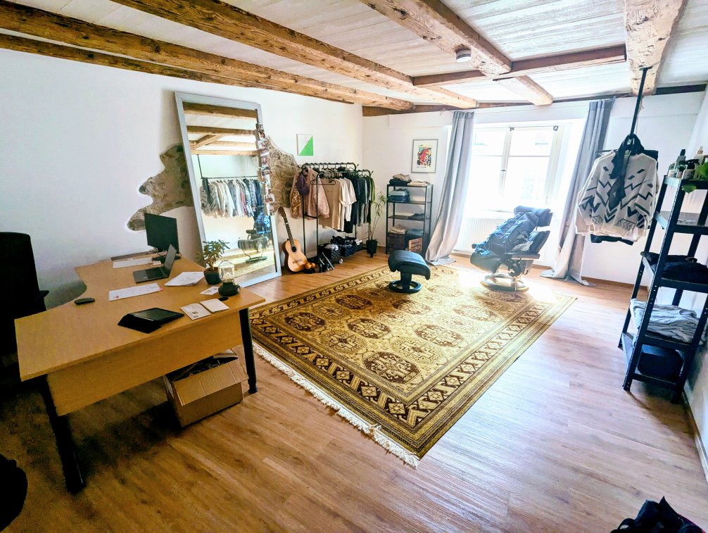 Die Wohnung verfügt über einen großen Raum, sowie einen kleineren Raum. Zusätzlich gibt es einen separaten Wohnbereich. Außerdem bietet die Wohnung ein getrenntes Bad und WC.