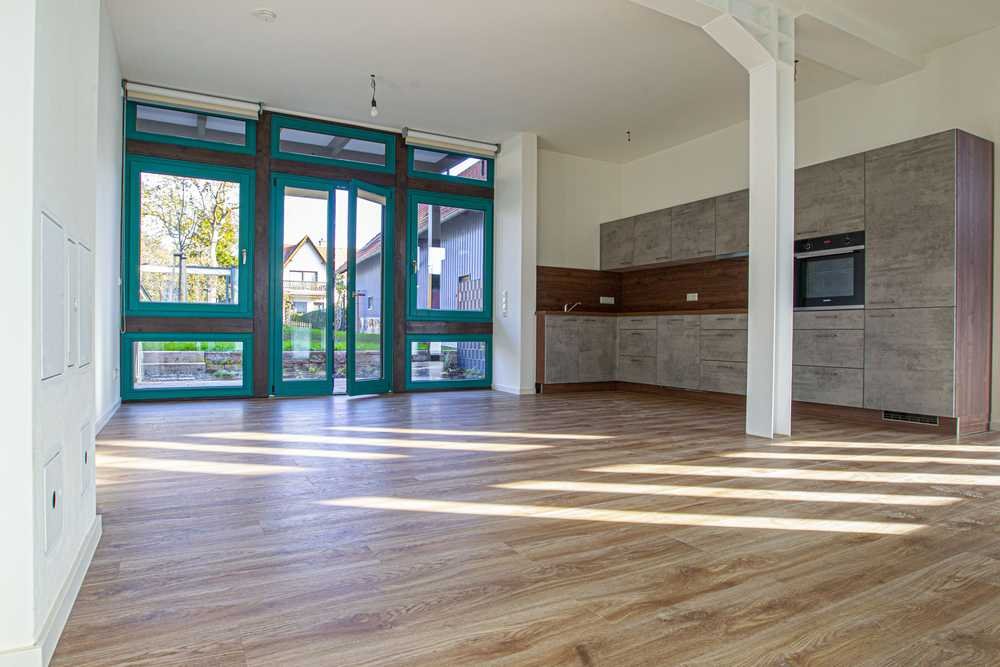 Die Fachwerk-Scheune aus dem Jahr 1886 wurde 2020 in ein Wohnobjekt umgewandelt. Die alten Fachwerkbalken wurden hierbei nahezu vollständig erhalten. Die lichtdurchflutete Atelierwohnung im Erdgeschoss verfügt über alle Annehmlichkeiten einer modernen Wohnung und besticht unter anderem durch viele Fensterflächen, Fußbodenheizung, Einbauküche, eine ebenerdige Dusche sowie 2,90m hohe Decken. Die Wohnung verfügt über eine offene Wohn-Küche mit Übergang in den Schlafbereich sowie ein Ankleidezimmer mit Duschbad.