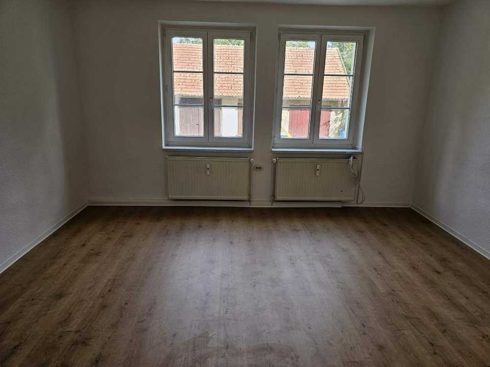 Im 1. OG liegt diese freundliche und renovierte Wohnung, die ab sofort bezogen werden kann. Drei attraktive und rennovierte Zimmer mit neuem Laminatboden, weiß gestrichenen Wänden und Türen bilden das schöne und helle Objekt aus. Im Wonzimmer befindet sich ein Kammin, der als Deko einen schönen Anklang finden wird. In der Küche befindets sich ein neuer Fliesenspiegel. Im gefließten Bad finden Sie ein Wannenbad, ein neues Waschbecken und eine neue Toilette nebst Spiegelschrank vor. Beachten Sie auch den Garten, in dem es sich wunderbar vom Alltag erholen lässt. Der an ein Feld grenzender Garten muß aber durch den Mieter hergerichtet werden. 1 Blockhaus und eine überdachte Terrasse sind diesem Ensemble includiert. Ihnen stehen außerdem zwei Kellerräume sowie die Mitbenutzung der Gemeinschaftswaschküche zur Verfügung. Weiterhin befinden sich gegen Aufpreis 2 Garagen, 1 Stall, 1 Handwerkerschuppen sowie ein Hühnerstall am angrenzenden Garten zu Ihrer freien Verfügung. Die Nebenkosten werden jährlich abgerechnet. Die Vorauszahlung in Höhe von € 225,00 wird bei Mehr- oder Minderverbrauch angepasst. Vereinabren Sie mit uns einfach einen Besichtigungstermin. Wir sind kein Makler sondern die Eigentümer dieser Wohnung. Es kommen also keine weitere Kosten auf Sie zu.