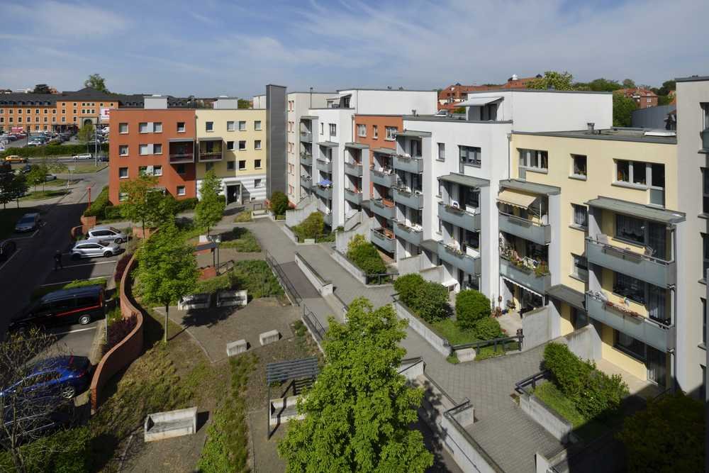 Direkt vor dem Haus lädt eine kleine, begrünte Parkanlage mit Sitzmöglichkeiten zum Verweilen ein und schafft eine ruhige, freundliche Atmosphäre mitten im Stadtzentrum.