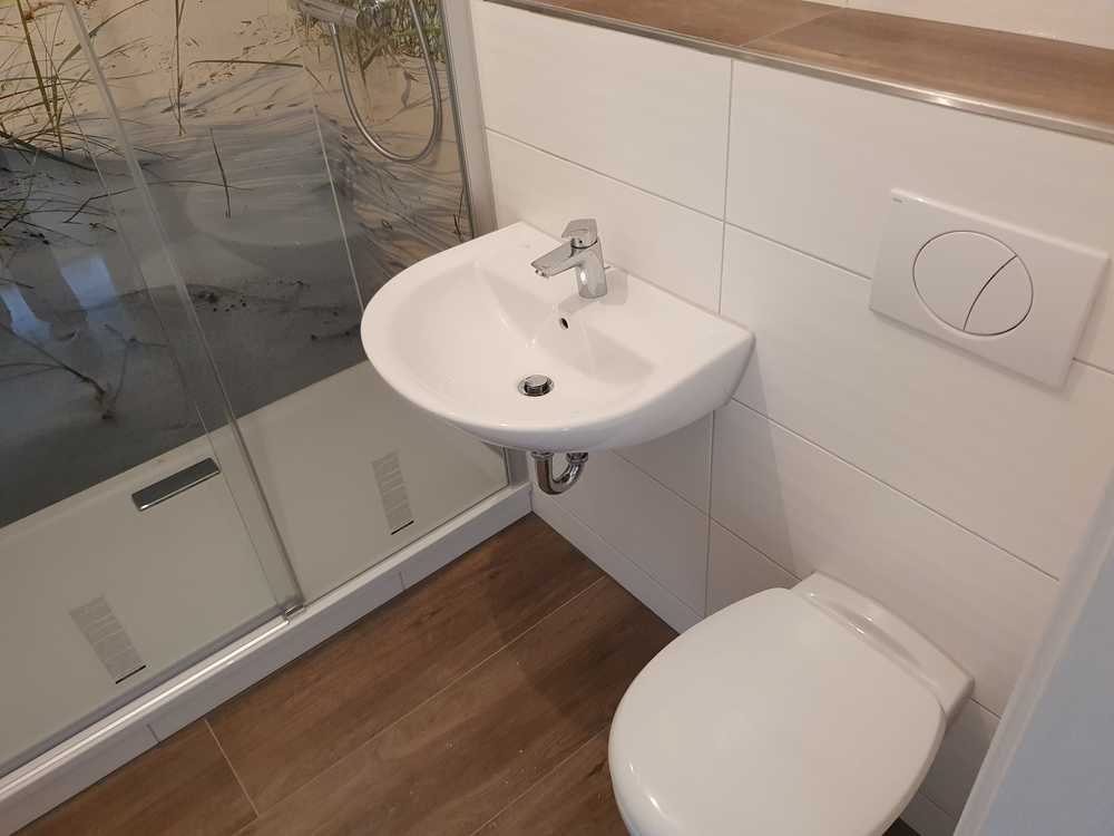 Nicht nur die moderne Einbauküche, die keine Wünsche offen lässt, sondern auch das brandneue Bad ist auf jeden Fall ein Hingucker.