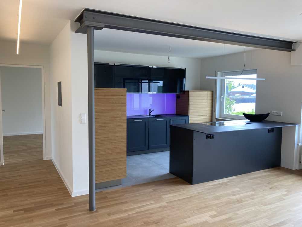 Die Wohnung ist sehr offen gestaltet und wurde mit großen, repräsentativen Räumen inkl. Panoramafenstern versehen. Zudem ist die Wohnung mit einer offenen luxuriösen Küche für gehobene Ansprüche ausgestattet. die sich durch ihre individuelle Gestaltung optimal in das gehobene Raumkonzept der Wohnung einfügt.
