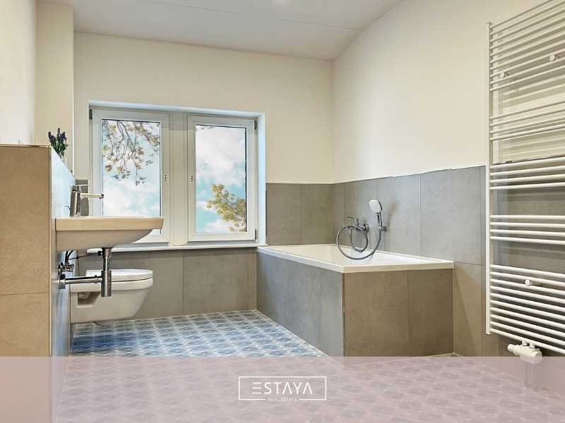 Die Wohnung überzeugt durch eine durchdachten Raumaufteilung und bietet ein Loft ähnliches Raumgefühl. Der weitläufige Wohn- und Essbereich bildet das Herzstück des Zuhauses. Drei weitere Zimmer lassen sich individuell als Schlaf-, Arbeits- oder Gästezimmer nutzen. Das Hauptbad verfügt über eine Badewanne und eine Dusche. Ergänzt wird das Angebot durch ein Gäste-WC. Ein Hauswirtschaftsraum bietet Platz für Waschmaschine und Trockner. Ein Highlight ist der ca. 60 m² große Garten, wovon ca. 28qm als Terrasse genutzt werden können. Zusätzlich gehört ein Kellerabteil zur Wohnung. Zwei Stellplätze sind nicht in der Kaltmiete inklusive. Die Wohnung verbindet modernes Wohnen mit einer ruhigen Umgebung.