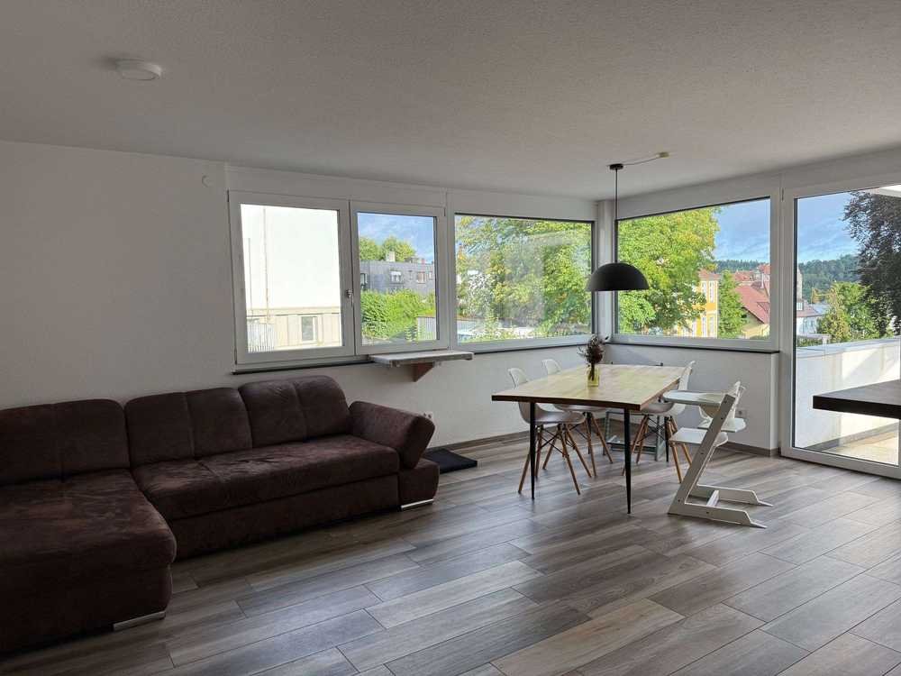 Sowohl vom Wohnzimmer als auch vom geräumigen Balkon aus hat man einen schönen Blick auf die Altstadt, sowie auf das Schloss Sigmaringen.