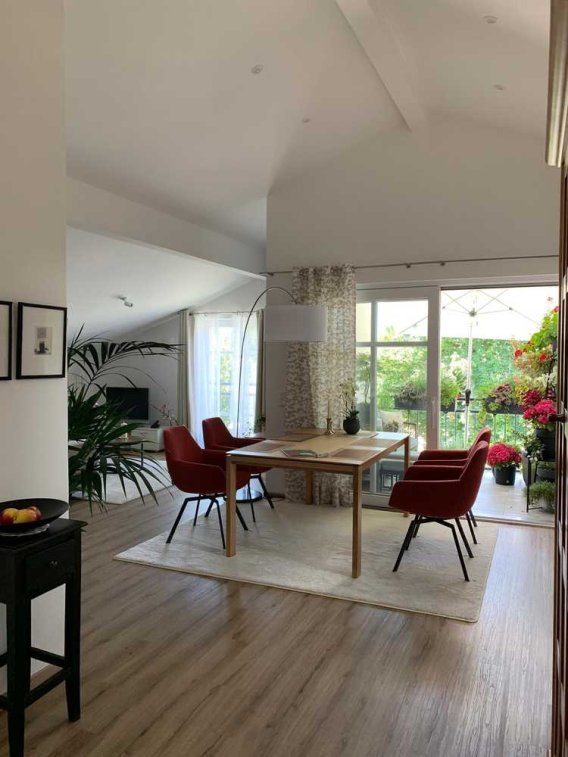 Dachgeschoss-Wohnung mit großer Logia + Alpenpanorama: stilvolle, zentrale 2-Zimmer-Wohnung Übersee