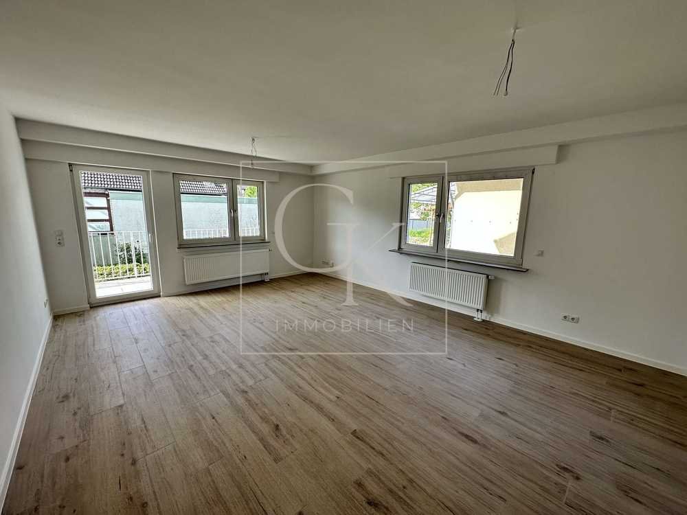 Lichtdurchflutete großzügige freundliche Erdgeschoss-Wohnung mit 4 Zimmern, Küche, Flur, Bad und Gäste-WC, insgesamt ca. 122,1 m2. Ideal für eine Familie mit Kindern. Der breite langgestreckte Süd-Balkon bietet einen wunderschönen Blick auf den grünen Garten und Ausblick in die Landschaft. Die Wohnung wurde 2024 komplett modernisiert und präsentiert sich demnach in einem neuwertigen Zustand auf neuestem hochwertigem Wohnstandard mit elektrischen Rollläden, modernem Bad-Design, Glasfaseranschuss und Gegensprechanlage.