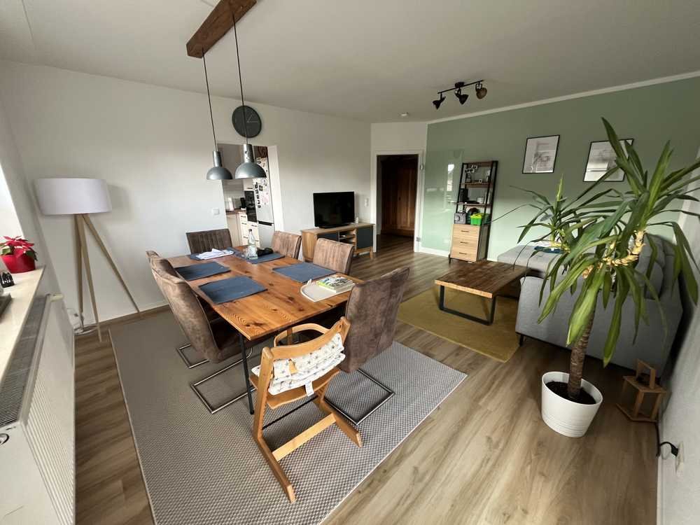 Vom Flur aus gelangen Sie in das Wohn- und Esszimmer mit Zugang zum Balkon sowie in die separate Küche. (Kann vom Vormieter übernommen werden).