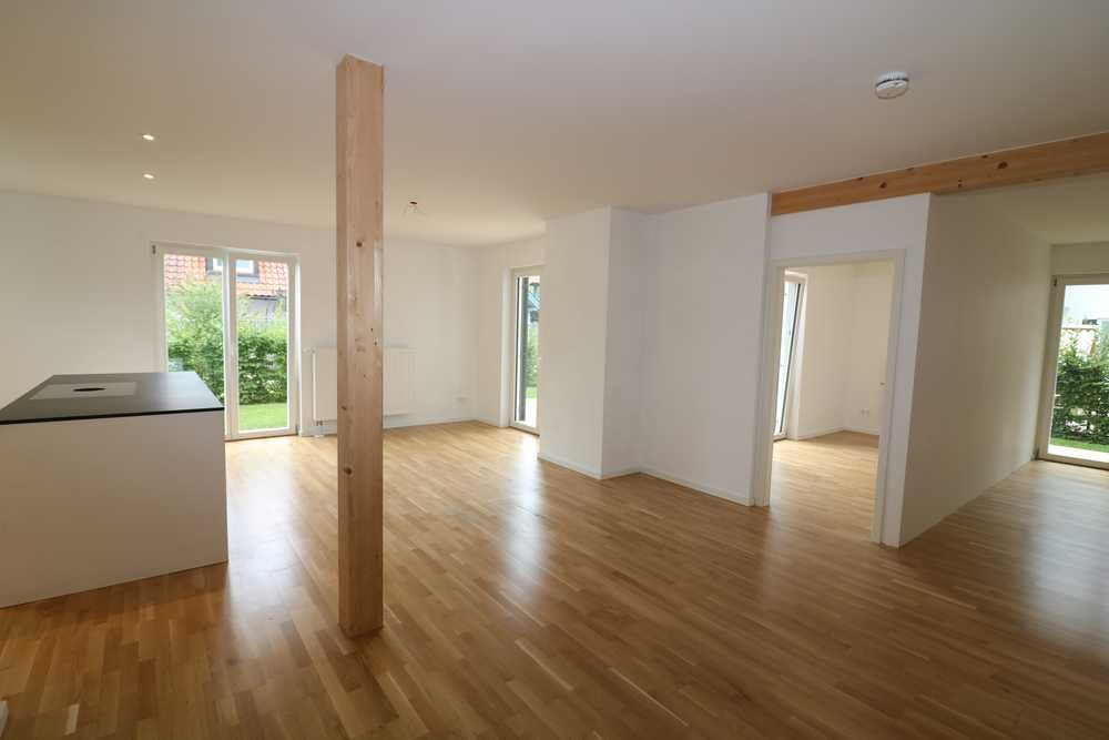 Das Mehrfamilienhaus in Holzständerbauweise beeindruckt bereits auf den ersten Blick mit seinem modernen und ansprechenden Design. Die Architektur vereint zeitgemäße Eleganz mit harmonischer Integration in die umgebende Natur. Die Erdgeschosswohnung erstreckt sich über ca. 150 m² Wohnfläche und bietet ausreichend Platz für Sie und Ihre Familie. Hier können Sie Ihren individuellen Wohntraum verwirklichen.