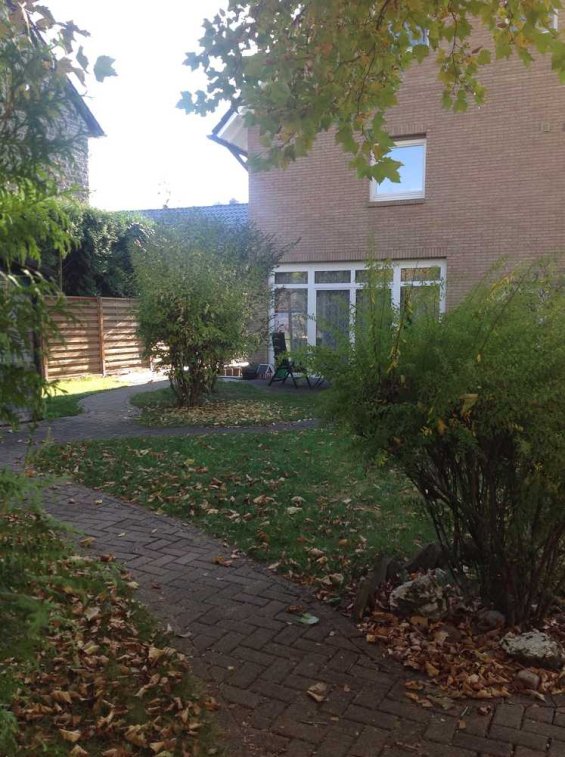 Der hauseigene Vorgarten mit Rasen und Blumenbeeten kann zum Entspannen, Grillen etc. genutzt werden.