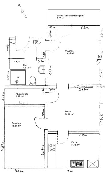 kombiniertes Wohn-/Esszimmer (siehe Grundriss)