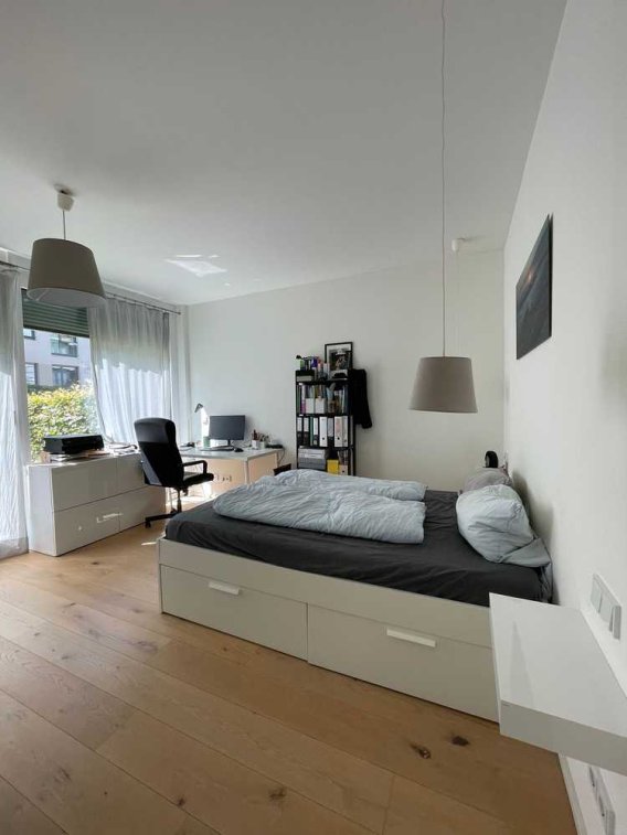 - ein sonniges Schlafzimmer mit viel Tageslicht