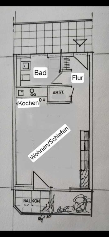 Wohnung in Landau, in ruhiger Wohnanlage, günstig gelegen zu Bahnhof und City. Bestehend aus Wohn-/Schlafraum, Küchenzeile, Bad mit Fenster, Abstellraum mit Regalsystem, Flur mit Regalsystem für Garderobe, Balkon, III. Etage. Aufzug, separater Abstellraum/Keller. Stellplatz in TG kann angemietet werden.