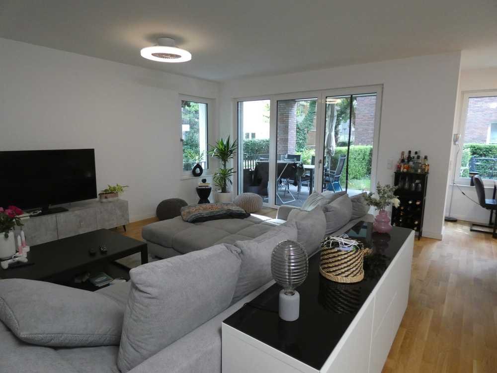 Zu vermieten ist diese moderne und hochwertig ausgestattete Erdgeschosswohnung mit eigenem Garten. Bodentiefe Fenster, eine großzügige Sonnenterrasse und die offene Raumgestaltung sorgen für ein helles, freundliches Wohnambiente.