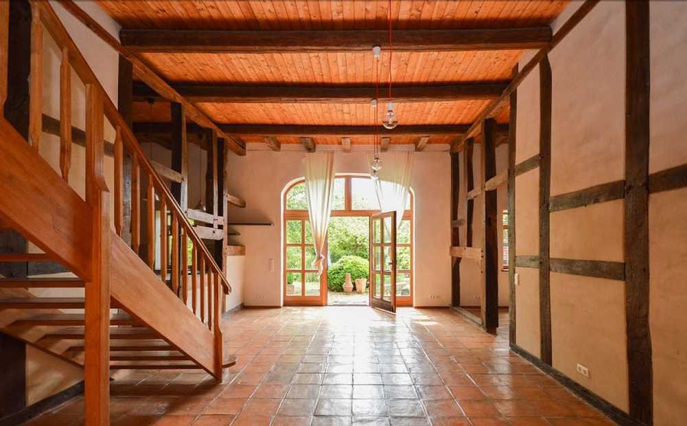 Dieses nach alter Handwerkskunst erbaute Eichenfachwerkhaus stellt eine absolute Rarität dar. Das Haus wurde transloziert, d.h. das ursprüngliche Fachwerkhaus wurde abgebaut und aus den alten Eichenbalken, Backsteinen und Dachziegeln an anderer Stelle wieder aufgebaut. Dies ergibt ein Haus mit neuester Haustechnik, allerdings im Originalambiente des ursprünglichen Vierständer-Fachwerkhauses. Das gesamte Objekt teilt sich in eine Hauptwohnung mit ca. 230 m² Wohnfläche sowie in die Nebenwohnung mit ca. 100 m² Wohnfläche (vermietet) auf, beide mit separatem Eingang.