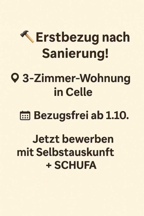 Frisch sanierte 3-Zimmer-Wohnung in Celle – Erstbezug ab 01.11.2025