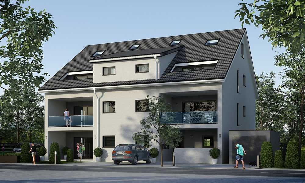 Die Wohnungen sind in gehobener Ausstattung realisiert und verfügen jeweils über einen großzügigen Balkon oder eine Terrasse. Zu jeder Wohnung gehört ein eigener Kellerraum. Das Mehrfamilienhaus bietet zudem 2 offene Stellplätze und 3 Garagen-Stellplätze. Hinter dem Gebäude lädt eine begrünte Fläche mit Spielplatz zum Verweilen ein.