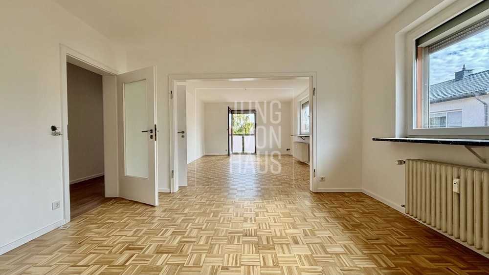 Der großzügige Wohn- und Essbereich mit hochwertigem Stäbchenparkett bildet das Herzstück der Wohnung. Von hier aus gelangen Sie direkt auf den sonnigen Balkon, der auch vom Schlafzimmer aus zugänglich ist – ein perfekter Ort zum Entspannen. Neben dem Schlafzimmer steht Ihnen ein weiteres, kleineres Zimmer zur Verfügung, das sich ideal als Kinderzimmer, Homeoffice oder Gästezimmer eignet.