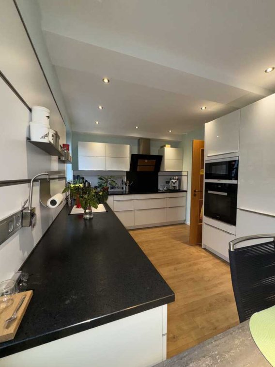 Die bereits vorhandene, moderne Einbauküche ist hochwertig ausgestattet und fügt sich stilvoll in den Raum ein. Hier ist alles vorhanden, um direkt einzuziehen und das Kochen im Alltag ebenso wie gesellige Abende zu genießen.