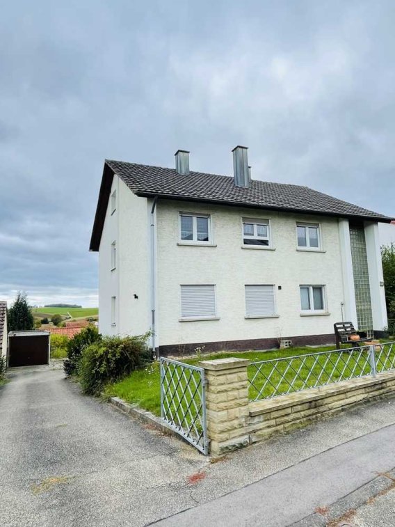 Bei dem zweistöckigen Haus handelt es sich um ein Zweifamilienhaus mit zwei Wohnungen und schöner Aussicht. Neben acht Zimmern zählen zwei renovierte Badezimmer und zwei Balkone zu dem Haus. Besonders hervorzuheben ist die großzügige Grundstücksgröße von 780 Quadratmetern mit einer freistehenden Einzelgarage. Die zwei Einbauküchen bieten genug Platz. Für weiteren Stauraum sorgen drei Kellerräume und eine Kellergarage. Das 1962 erbaute Gebäude wird durch eine Zentralheizung beheizt und wird als ein Immobilie gerne an eine große Familie vermietet.