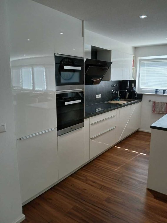 Im Mietpreis ist auch die Küche mit sehr hochwertigen Geräten (Miele Backofen mit Dampfgarer alles per Touchscreen, Zonenloses Kochfeld von Siemens, XXL Spülmaschine von Siemens) inbegriffen.