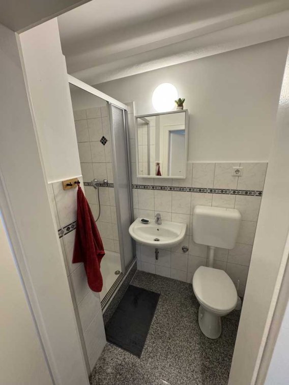 Schönes kleines Apartment mit einem Wohn-/Schlafzimmer, einem kleinen Flur, einer kleinen Küche und einem Badezimmer. Leider kein Kellerabteil.