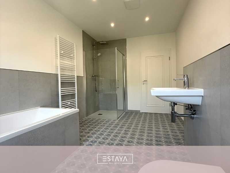 In direkter Nachbarschaft zum Naturschutzgebiet wird die historische Textilfabrik „Casa Nobila“ aufwendig saniert und bietet modernen Wohnraum mit historischem Charme. Diese großzügige 4,5-Raum-Dachgeschosswohnung überzeugt durch ihre hochwertige Ausstattung und stilvollen Details. Der Wohnbereich ist mit edlem Parkettboden in Eichenoptik und Fußbodenheizung ausgestattet, während die offene Wohnküche das Herzstück der Wohnung bildet. Von hier aus führt ein sonniger Balkon mit Blick ins Grüne nach draußen. Die zwei großzügigen Bäder sind mit eleganten Fliesen, Badewanne, zwei Duschen und Handtuchheizkörpern versehen. Eine Lichtkuppel im Kinderzimmer sorgt für viel Tageslicht, während ein praktischer Hauswirtschaftsraum und ein eigener Kellerabteil zusätzlichen Stauraum bieten. Zwei Außenstellplätze sind nicht in der Kaltmiete inklusive.