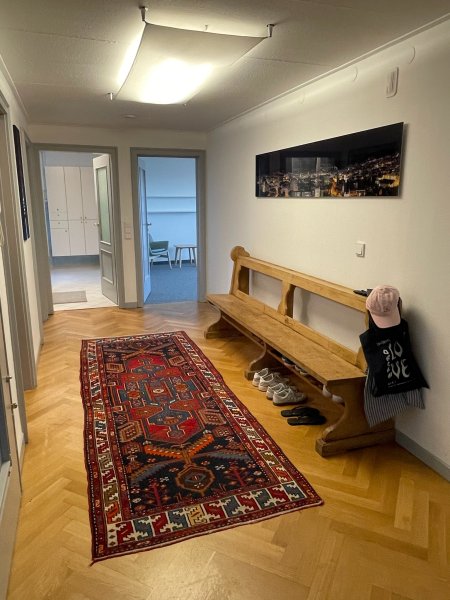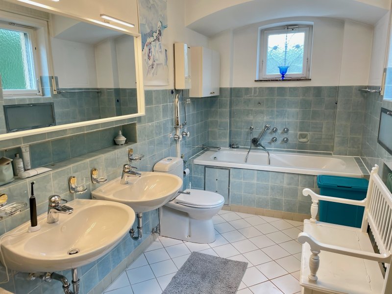 Die Wohnung ist möbliert, sehr hell und erstreckt sich über 169m2. Die Räume sind sehr großzügig und ein großes Wohn-/Esszimmer lädt zum gemeinsamen Verweilen ein. Die voll ausgestattete Küche verfügt über eine gemütliche Eckbank zum gemeinsamen Essen oder Spielen. Es gibt ein Bad mit zwei Waschbecken, Dusche, Badewanne und Toilette sowie eine separate Toilette. Zur Wohnung gehört ein separater Gartenbereich sowie eine großzügige Terrasse.