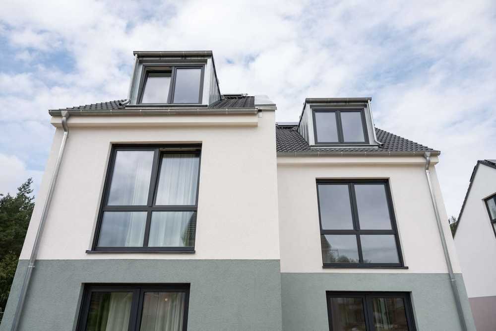 Das Haus wird als energieeffizientes Eigenheim der KfW 55 EE-Klasse gebaut. Die Energieversorgung zielt auf Nachhaltigkeit: Strom und Heizenergie werden über Kollektoren „auf dem eigenen Dach“ gewonnen und in einem Wärmepumpenspeicher gespeichert. Nicht benötigte Energie wird ins Stromnetz eingespeist. Durch diese Kombination aus Photovoltaik-Anlage und Sole-Wasser-Wärmepumpe erfolgt die Heizungs- und Warmwasserbereitung autark, also unabhängig von Gas- und Ölpreisen. Darüber hinaus verfügen Fenster- und Türelemente über 3-fach-Isolierung. Die E-Ladesäule an den Pkw-Stellplätzen direkt am Haus liefert einen weiteren Beitrag zu einer CO2-neutralen, emissionsarmen Energiebilanz.