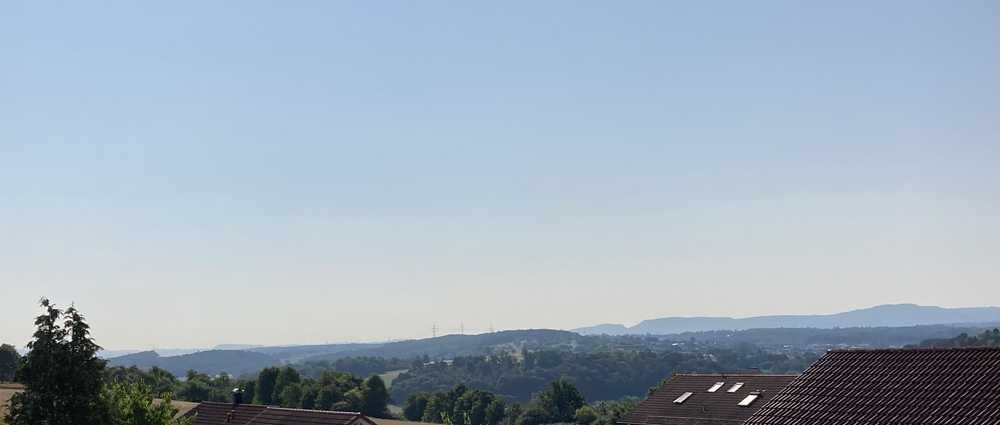 Sie haben eine unverbaubare wunderschöne Fernsicht und können das Panorama der Schwäbischen Alb sehen. Durch die Turmform des Essbereiches, haben Sie bei entsprechender Wetterlage im Wohnzimmer und im darunterliegenden Wohnraum der Einliegerwohnung den ganzen Tag über Sonne.
