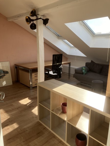 kann möbliert, teilmöbliert oder leer angemietet werden. Momentan ist ein großer Kleiderschrank, Regal, großer Schreibtisch, ideal für Berufstätige, eine Schlafcouch oder auf Wunsch ein Bett vorhanden. Es hat DG Schrägen mit 2 Dachfenstern, die für genug Tageslicht sorgen und der Zugang zur Dachterrasse für entspannte Stunden im Freien ist immer möglich.