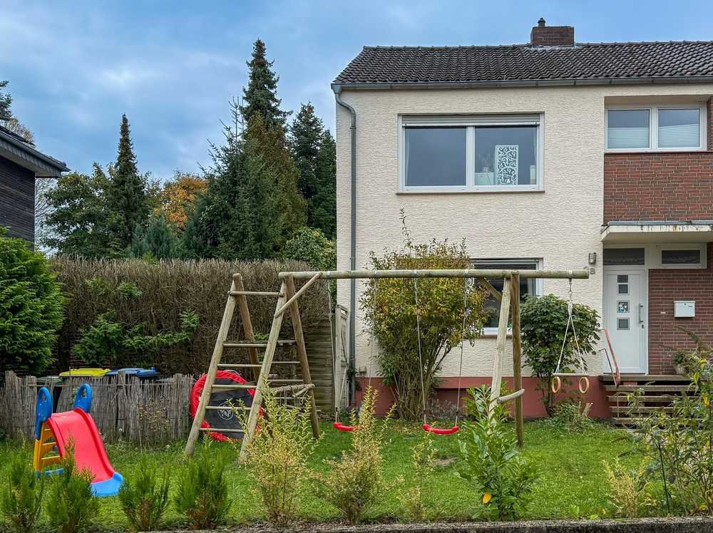 Die angebotene Doppelhaushälfte mit ca. 100 m² Wohnfläche und ca. 200 m² Garten mit 3 großzügigen und hellen Zimmern steht ab dem 01.01.2026 zur Vermietung. Das Haus erstreckt sich über zwei Etagen mit voller Raumhöhe. Der Eingangsbereich mit Windfang, Flur mit Einbaugarderobe und Gäste-WC sind gefliest, ebenso wie die offene, voll ausgestattete Küche. Das Wohnzimmer mit angrenzendem Essbereich ist neu (April 2025) mit einem modernen hellen Vinyl-Boden in Holzoptik ausgelegt. Ein eigener abgeschlossener Garten (Süd-Ost) mit großem Terrassenplatz und Garagenzugang hinter dem Haus, so wie ein weiterer Bereich vor dem Haus bieten viel Platz für Zeit im Grünen. Das Haus ist voll unterkellert und verfügt auch auf dem Dachboden über viel zusätzlichen Stauraum.