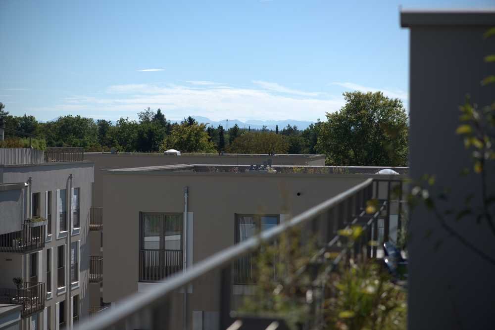 Besonders hervorzuheben sind die beiden Außenbereiche: eine Loggia mit Westausrichtung sowie eine große Dachterrasse nach Osten. Dank der exponierten Lage lässt sich die Sonne den ganzen Tag genießen. An klaren Tagen eröffnet sich zudem ein unverbaubarer Blick auf die Alpen.